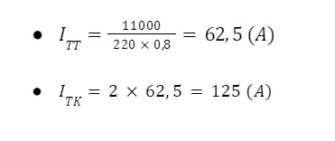 Mặt khác, công thức tính toán gần đúng cho tiết diện dây dẫn dựa theo cường độ dòng điện là S = I / J