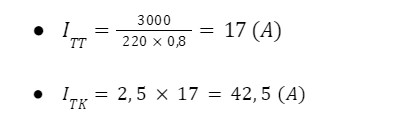 - Với dây dẫn tiết diện 4mm2: Dùng cho thiết bị điện công suất trung bình, tối đa <5700W. => Chọn aptomat loại 25A.