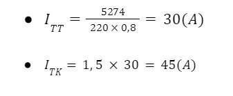 Ví dụ cho cụ thể thiết bị sử dụng điện 1 pha:
